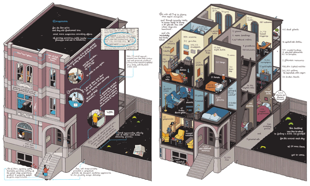 Another Ware piece that I love is the diagram of the apartment building in Building Stories that shows an entire history of all the people who have lived there.
