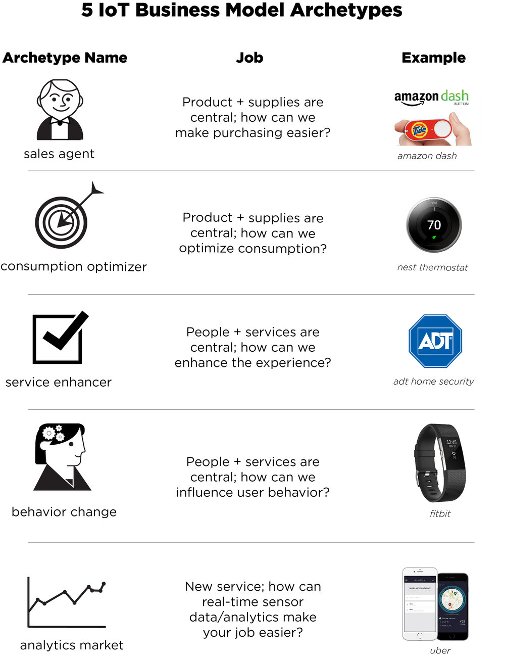 Peer Insight has observed five distinct jobs that IoT solutions do, and five resulting business model archetypes, as shown here.